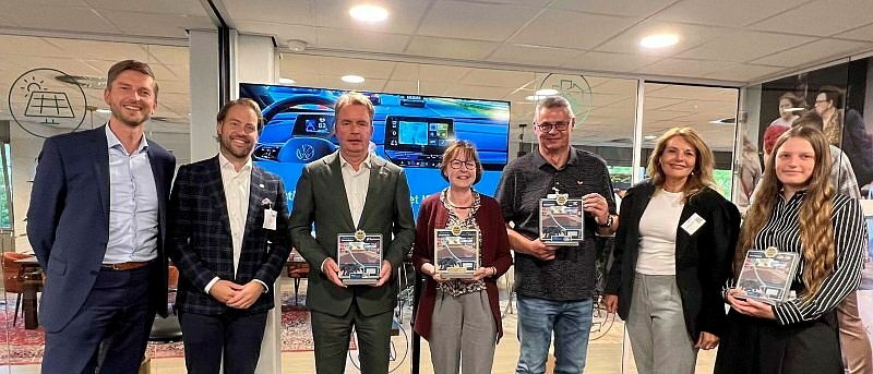 Als winnaar kwam de gemeente Berkelland uit de bus. Volgens de jury had Berkelland vooral goed gescoord met duidelijke en herkenbare gebieden, die ook nog eens goed waren ingericht. Namens de gemeente Berkelland mocht wethouder mobiliteit Ria Leliveld (midden op de foto) de prijs in ontvangst nemen.